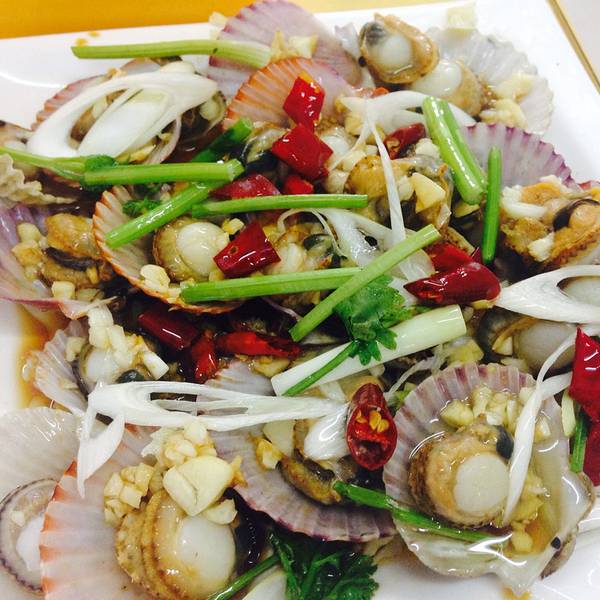然后!!就到了今天的重点呀重点~~到南山市场自己买海鲜 然后请人加工! 坐公车还是有一小段距离的 因为差不多到台东这边啦~ 卖海鲜的超级多 我俩都属于怕麻烦怕剥的 所以一直同意不要吃螃蟹 没有男朋友的心酸啊~~ 然后我们买了基围虾 虾虎 扇贝 鲍鱼 好像差不多就买了40多50的样子 沿路下去好多店都写着海鲜加工 我们挑了家比较干净的 叫沂水人家 店家是女的 她帮我们看了下买的东西 收了我们40加工费 店里挺干净 吃得爽!!!买的时候嫌多 后面发现再买一点也木有问题!