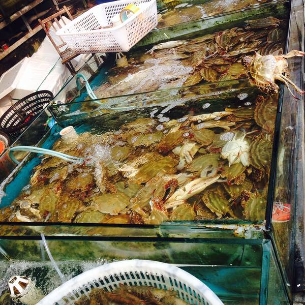 然后!!就到了今天的重点呀重点~~到南山市场自己买海鲜 然后请人加工! 坐公车还是有一小段距离的 因为差不多到台东这边啦~ 卖海鲜的超级多 我俩都属于怕麻烦怕剥的 所以一直同意不要吃螃蟹 没有男朋友的心酸...