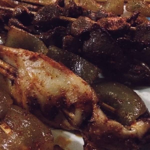 当地朋友推荐的烧烤,夏天最适宜擅串,版纳四季如夏,烧烤也是遍地开花。头一回吃凉拌牛皮,看样子类似猪皮,口感比猪皮更脆,酸辣口味很入味儿;水果玉米直接煮一下,蘸着"喃咪"吃,一种蘸水,小玉米的甜嫩裹着香...