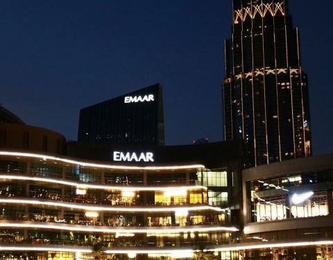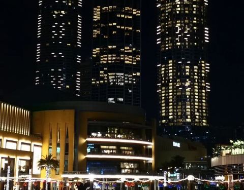 夜晚的Dubai Mall和哈利法塔灯光璀璨,人流涌动,好不热闹。