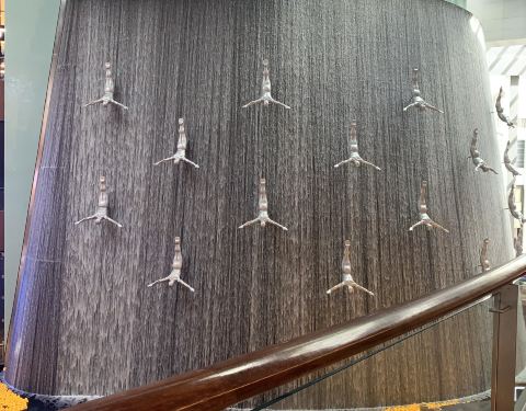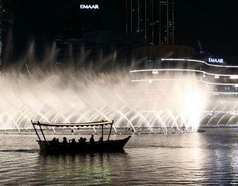 11月的迪拜气温怡人,坐在餐厅看着壮观的音乐喷泉,还有幸听到了梁祝的背景音乐。此刻我们才是过上了“纸醉金迷”的都市夜生活,太惬意了。迪拜的音乐喷泉是世界第一的喷泉,最高可以喷到150米,相当于50层楼高。每晚18点—23点,半小时一次,每次5分左右,每一场的背景音乐不同,随着音乐起舞的水柱自然也是千变万化。