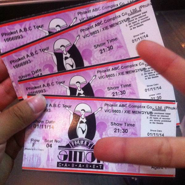 实用 因为全场规定禁止拍摄,所以我去官网找了照片给大家看看,以下两张图出自官网。第二场:19:45来普吉不能错过的show,一定是西蒙人妖秀。西蒙人妖艺术团是普吉最大的人妖表演艺术团,每晚都会上演。虽然表演的歌曲都是对口型,但是涵盖了全世界几大民族的歌曲,让不同国家的游客都能感受到自己国家的民族风...来普吉不能错过的show,一定是西蒙人妖秀。西蒙人妖艺术团是普吉最大的人妖表演艺术团,每晚都会上演。虽然表演的歌曲都是对口型,但是涵盖了全世界几大民族的歌曲,让不同国家的游客都能感受到自己国家的民族风情。西蒙秀,每天3场表演,第一场:18:00;第二场:19:45;第三场:21:30。我们是当天在淘宝订的,基本上能订到的都会是VIP座位,价格也不贵。入座后,提供免费的瓶装水。全场表演禁止摄像拍照,根据屏幕的告示,违者会罚款5万美金。不清楚是否真的有人被罚款,不过在表演过程中,的确有人摄像,会有安保用手电警告你。出门在外,还是尊重当地风俗习惯比较好!看完整场秀,我认为很值得,场面恢弘华丽,而且每一位人妖的打扮和表演都非常的卖力。期间的暖场表演更令人捧腹大笑。令我印象最深刻的是双面人表演,一半男一半女,正是人妖们的真实生活写照。