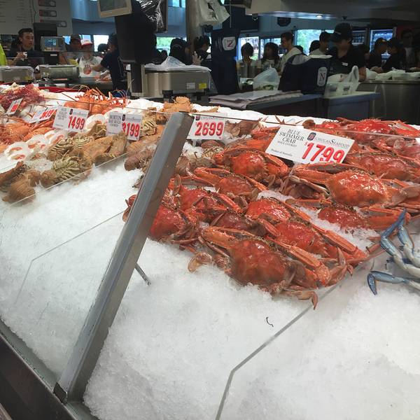 悉尼鱼市场的名气在众多中国旅客中的名气非常大,令我也不得不来拜访一次。来悉尼鱼市场的交通非常的方便,可以选择乘坐悉尼城市轻轨在FISH MARKET站下车即可,出站后过对面马路就到了。同时也可以选择步行到这边...悉尼鱼市场的名气在众多中国旅客中的名气非常大,令我也不得不来拜访一次。来悉尼鱼市场的交通非常的方便,可以选择乘坐悉尼城市轻轨在FISH MARKET站下车即可,出站后过对面马路就到了。同时也可以选择步行到这边,从Market City步行过来大概30分钟,有点小绕路。可是刚来到鱼市场我就稍微有点失望了,这里真的太多人了,估计是周末的缘故,而且这里基本上都是中国游客,有自由行的但更多的是旅行团,这里都差不多变成了一个午饭用餐点了。幸亏来的时候天气不太热,里面人山人海,想找个不那么拥挤的地方几乎不可能。