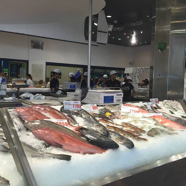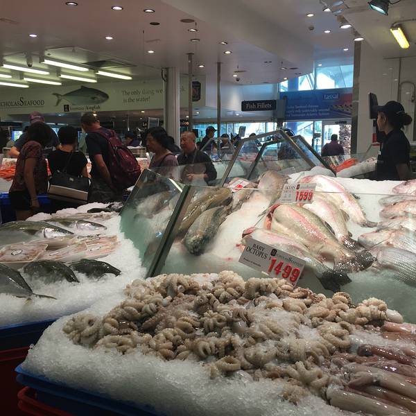 悉尼 鱼市场(Sydney Fish Market)是 悉尼 乃至澳洲最大集批发、零售与餐饮与一体的鱼市,也是享用和采购海鲜的好去处。市场内设有各具特色的海鲜餐厅,中西日式海鲜美食应有尽有。悉尼 鱼市场位于Darling Harbo...悉尼 鱼市场(Sydney Fish Market)是 悉尼 乃至澳洲最大集批发、零售与餐饮与一体的鱼市,也是享用和采购海鲜的好去处。市场内设有各具特色的海鲜餐厅,中西日式海鲜美食应有尽有。悉尼 鱼市场位于Darling Harbour以西约1公里的位置,到了附近,跟着鱼腥味和人流走就能找到了。午饭时间市场里人很多,说摩肩接踵一点不为过,不仅市场内的座椅全满,连户外的座椅都找不到空位,建议大家去的时候错开饭点。生蚝,可以买半打或者一打(12个),很新鲜,价格差不多1澳元一只。鱿鱼西澳产龙虾,39.99澳元每公斤,折合100人民币一斤。芝士焗龙虾鲍鱼和三文鱼各种海鲜品种齐全,而且很新鲜,但是不知道是不是知名度高的缘故,价格谈不上便宜,有些比国内高不少。可以选择这种海鲜拼盘,种类比较多,价格实惠。市场内还有水果蔬菜超市,海鲜吃腻了可以买点水果解解腻。专卖各种cheese制品的小店
