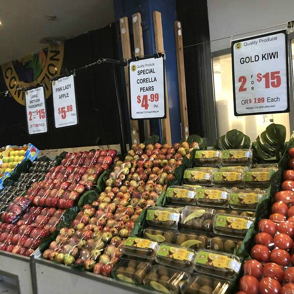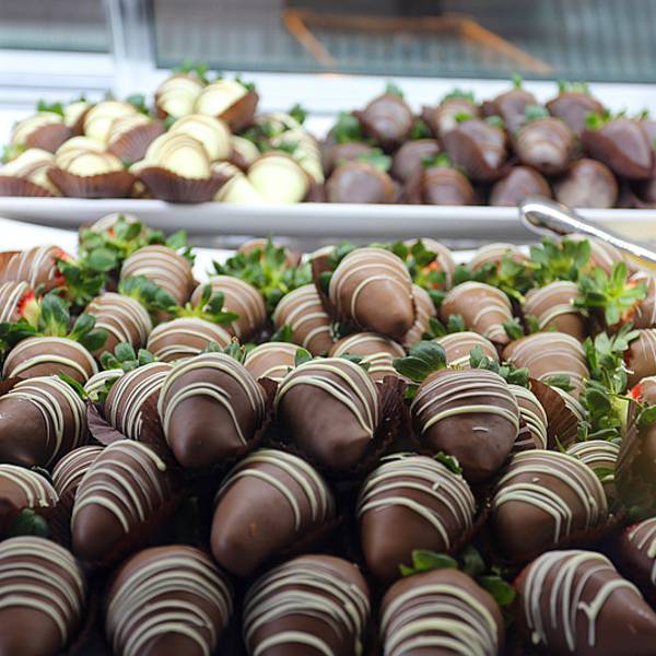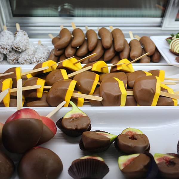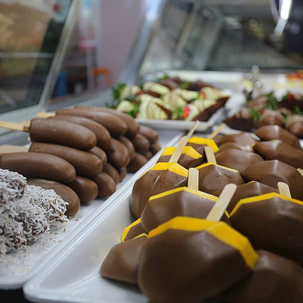大虾我认为直接清水煮熟为好,不带任何调料,新鲜的食材就得原汁原味才吃得有滋有味嘛!除了海鲜,鱼市场最里面右拐角有一家卖水果酸奶的,味道很不错,是那种浓浓厚厚,需要用勺子挖的酸奶,里面拌着草莓、香蕉、芒果、坚果等.提醒各位吃客,吃海鲜不忘护着美食,天上飞着的鸟人可不是吃素的,稍不留神盘中餐可能就是鸟人的美食。水果巧克力,在香蕉、芒果外包裹着一层巧克力,第一口略带苦味,再一口水果的香甜,融化在口的巧克力与果肉在嘴里不停搅拌,奇妙的口感,无法形容。