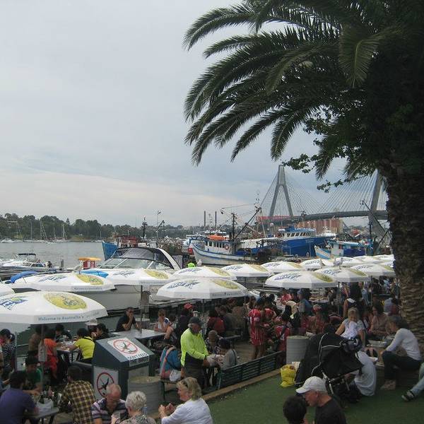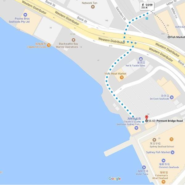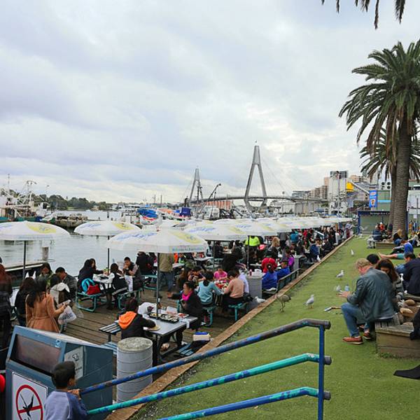 悉尼鱼市场(Sydney Fish Market)是悉尼乃至澳洲最大集批发、零售与餐饮与一体的鱼市,也是市民们享用和采购海鲜的好去处。市场内设有各具特色的海鲜餐厅,中西日式海鲜美食应有尽有。从这张图片中可以看出其实悉尼鱼市场(Sydney Fish Market)离Darling Harbour其实并不远,有轨电车几站路就到了。去悉尼鱼市场(Sydney Fish Market)可以从中央火车站或者China Town, 或者Darling Harbour的The Star赌场下面可以坐有轨电车前往。市场里主要客源集中在门口的Nicolas’s 和 Peter’s, 两家,店里熟食摊的各式海产尽现眼前,深海大龙虾,整条肥美三文鱼,巨大的皇帝蟹,闪闪发光的对虾,鲜活生蚝……琳琅满目。烧烤,刺身,油炸,清蒸,蒜茸炒……多种独特的烹调手法,惹人垂涎,游客除可即时到海鲜餐厅品尝丰富美食外,亦可随意在琳琅满目的鲜鱼部选购海鲜,把即买的鲜嫩的海鲜交到熟食部的大厨手上,按照自己的口味要求,烹调成一顿丰富鲜味的海鲜餐。游客还可以在旁边的商店里买瓶葡萄酒,到海港边的露天餐座,一边欣赏海景,一边品尝美食,别有一番风味。 市场里还有面包点心铺,大型水果超市,还有葡萄酒专卖店等,游客可以随心所欲地采购自己喜欢的食品。游客除了品尝名厨的手艺,享用一顿特色海鲜外,亦可学会一手精湛厨艺。游客可以在鱼市场内的悉尼海鲜烹饪学校里学习中、日、意、泰等各国海鲜菜式的烹调方法,一试身手,亲自炮制一餐海鲜宴。