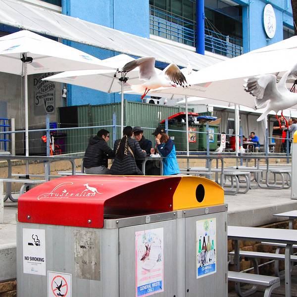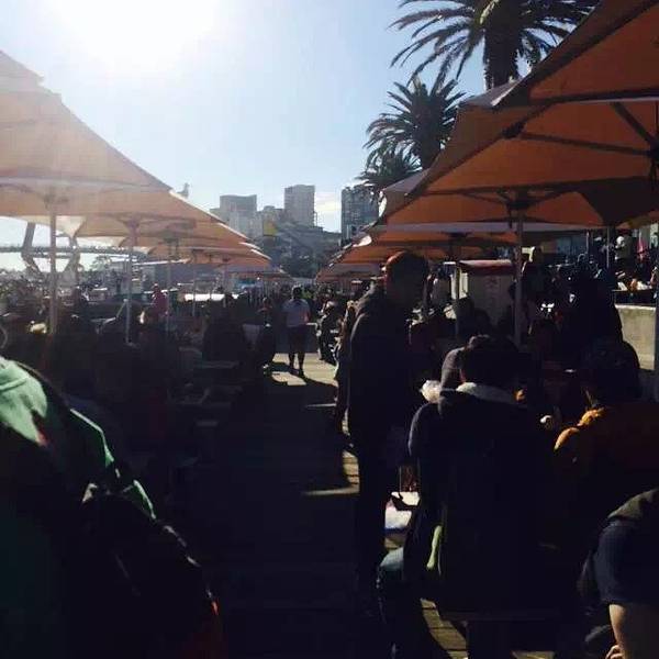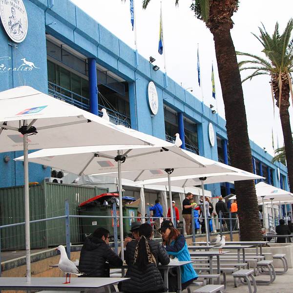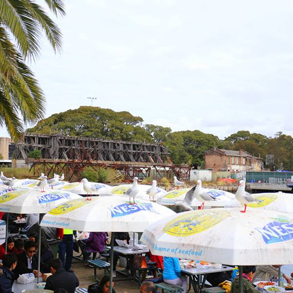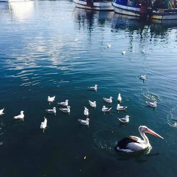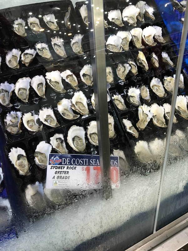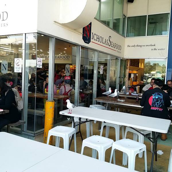 鱼市场内的摊位其实并不多,跟我想象中的那种鱼市场还是差的有点远,感觉这里的基本上都只是在做外地游客的生意。海鲜的种类虽然也挺多的,但是看起来并没有那种新鲜得能让人从外地过来的魔力,相反,这里的价格也贵的有些离谱,跟市里其他对方相比完全没有竞争力。来之前朋友也给我介绍了Nicolas的这家店,在尝试过了一大小生蚝和一个海鲜拼盘后,我感觉还是相当失望的,生蚝跟在超市买的尝起来没有多一份的新鲜,而买拼盘的时候由于人太多,售货员还搞错了不少客人的拼盘,场面有些混乱。更令我不喜欢这里的是,如果想在午餐高峰找一个户外的位置坐下来海鲜,真的有点困难。买好海鲜之后我大概在室外绕了三圈才找到一个位置坐下来,到处都是人,跟国内黄金周的某些景点真的没什么分别。一共吃了五十多澳元的海鲜,感觉连一点饱的感觉都没有,一个人过来也不好点整条鱼之类的,幸亏没有点,不然更加的失望。后来在市中心的某些高级酒店吃几十澳元的自助餐,海鲜的新鲜感完全不输这里。有个很值得注意的是,户外吃饭的地方有很多鸟类在活动,吃东西尽量快一点,不然万一它们瞧上了你桌面上的海鲜,它们就会偷袭人类,在吃饭的时候旁边的一桌就不幸中招,还把酱油之类的撒到身上,相当危险,因此吃饭的时候还是得注意一下。