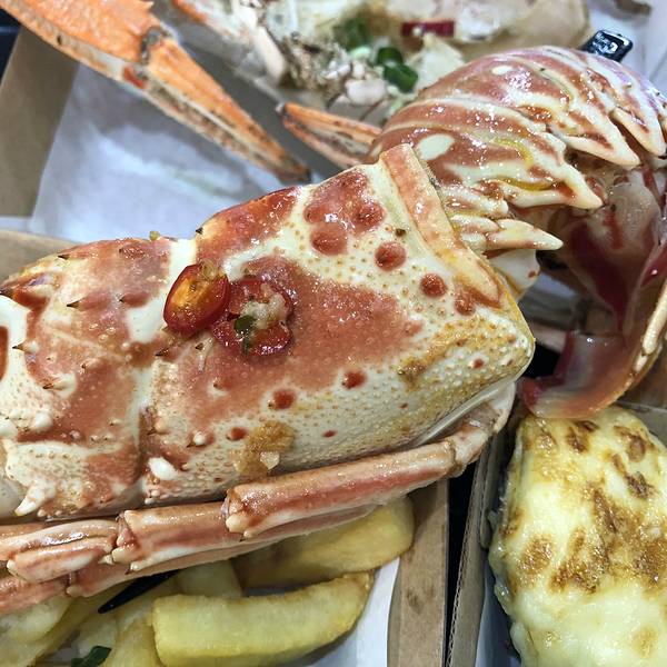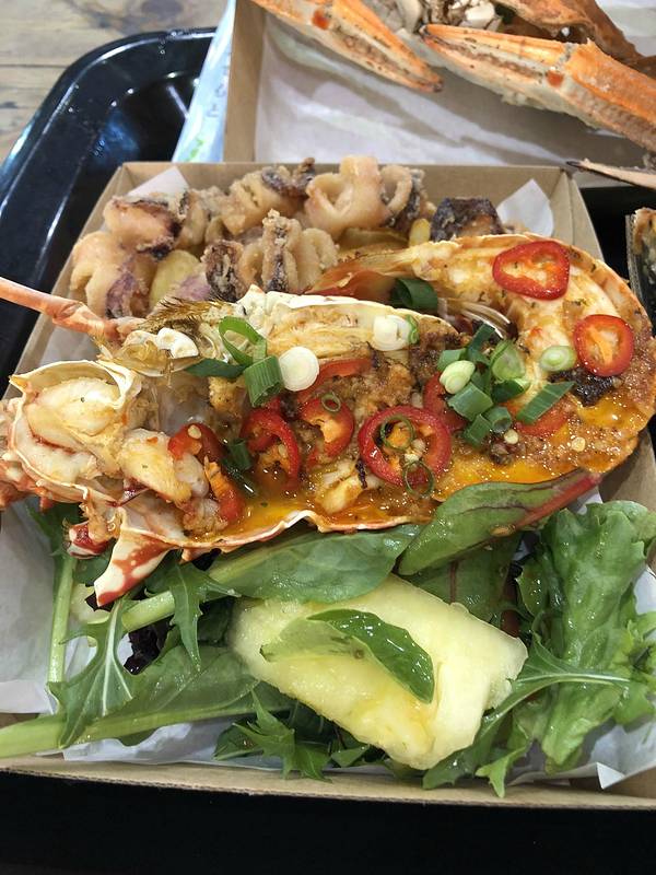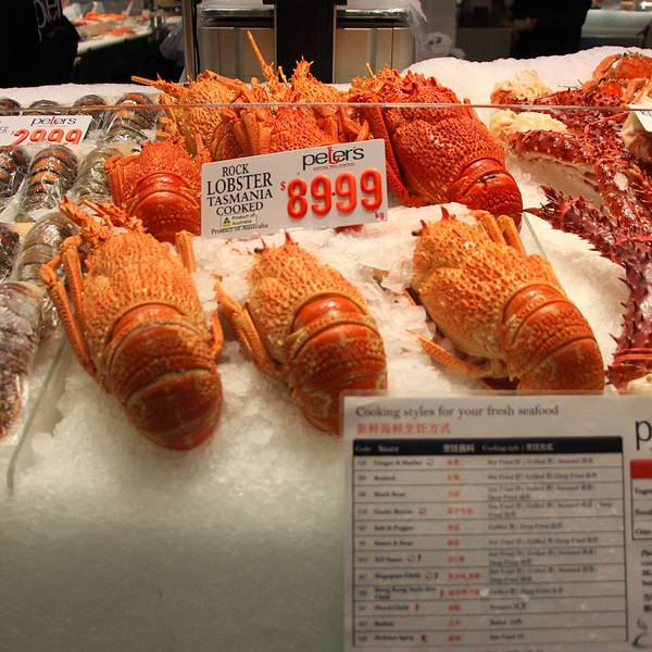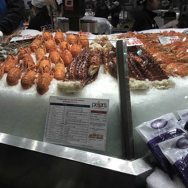 - 这里有很多家在卖海鲜鱼类,我们在最有名的Peter家买了一只澳龙,要就生吃做刺身实用