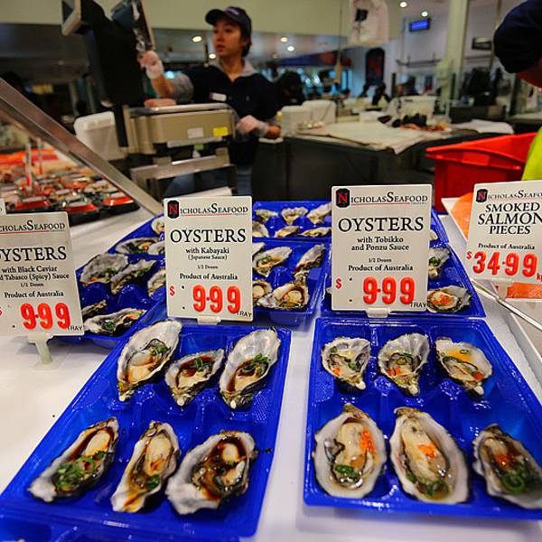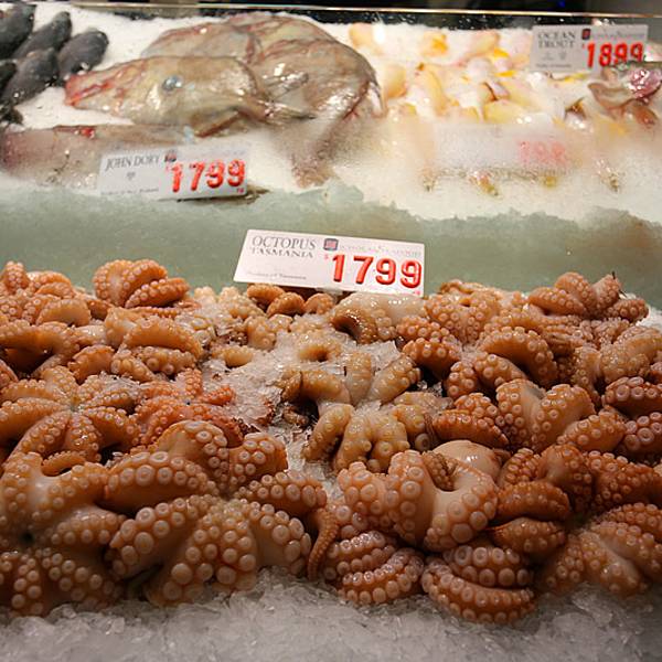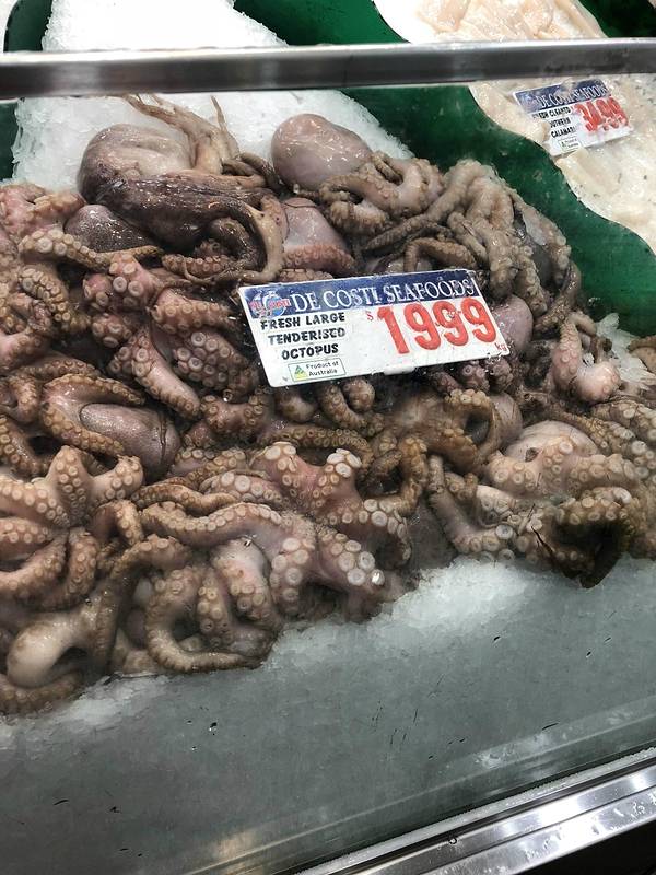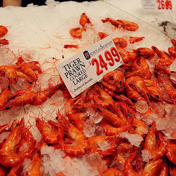 一顿海鲜大餐,包含虾、生蚝、小龙虾、乌贼鱼加配菜薯条也基本在$40,澳洲大龙虾可不算进去哦!在鱼市场,海鲜是必须品尝的,看看诱人垂涎的海鲜,是不是流口水先,不过价格也不便宜,