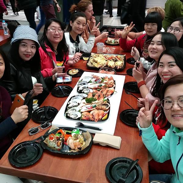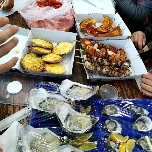 周一-周日:7:00-16:00各种虾子,生蚝~~~~根本不用担心语言问题,餐厅好多服务员都是 中国 人,还有汉字到处都是,我们就是在这家海鲜烧烤就餐的。来的时候看见好多人在门外面靠近码头位置就餐,但是昨天被海鸥攻击后,我就果断放弃在外觅食的时间,太可怕,并且码头那味道特别重,还有垃圾。我们直接选择加工好的食物,哪一个盘子选择你要的最后结账就可以。一切买好,找到位置开始就餐啦,吃了一段时间旅行团的人就来了,瞬间变成一个大菜市场,所以自由行的亲一定早点去就当吃一个早中饭。芝士扇贝,口感特别好吃,就是吃多了腻~~~海鲜搭配可乐~~~~一群虎视眈眈的贼鸥。