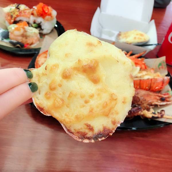 - 芝士扇贝,口感特别好吃,就是吃多了腻~肉质肯定更多。流口水中。可以直接买这些海鲜,然后找店可以加工