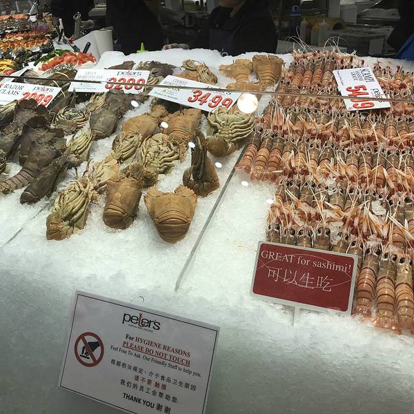 悉尼渔市场是南半球最大的渔市场,全世界排名第二,仅次于日本东京筑地渔市场。里面除了海鲜还是海鲜,而且要多新鲜有多新鲜!悉尼鱼市是集批发、零售和餐饮与一体的市场,渔市场内的海产批发区域,游人是不能随便进入的;游客一般去的是海鲜零售的商店街区域,那里既有座位可以坐下用餐(生食熟食都有),也可以买新鲜的海鲜回去烹调。满满的都是巨大澳洲龙虾,新鲜的生蚝、螃蟹,还有现场切割的各种体型的澳洲鲜鱼们。
