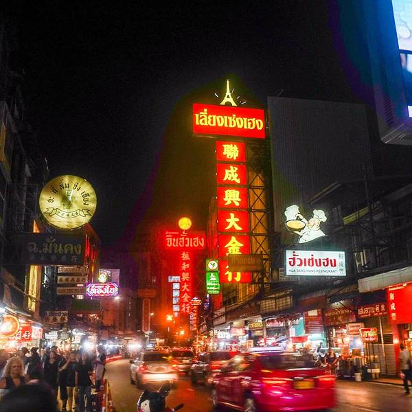 唐人街在曼谷市区西部,是城区最繁华的商业区之一,也是老曼谷的街区之一,有近200年历史。这里的房屋大都比较古旧,但商业却异常繁荣,经营者几乎全是华人、华侨。由Th Sampeng、Th Yaowarat、Th Charoen Krung...唐人街在曼谷市区西部,是城区最繁华的商业区之一,也是老曼谷的街区之一,有近200年历史。这里的房屋大都比较古旧,但商业却异常繁荣,经营者几乎全是华人、华侨。由Th Sampeng、Th Yaowarat、Th Charoen Krung三条大街以及许多街巷连接而成。当时我们三个人是晚上从酒店打车前往的。走进唐人街,感觉时间在穿越,这里保留着典型的中国传统文化和华人社区习俗特点,商业繁荣,吸引着大量中国与其他国家的游客。浓郁的中国气息,店铺供奉着福、禄、寿的画像,门上贴着对联。就因为如此,吸引了许许多多的游客前来看看这个泰国的中国街。来这边的人都喜欢这里的餐厅,都是以潮汕风味为主,还有各式广式小吃,如猪脚、卤蛋、鱼丸和炒粉等。每天晚上这里的人特别的多,看到这样的公交车突然感觉还是中国的好。