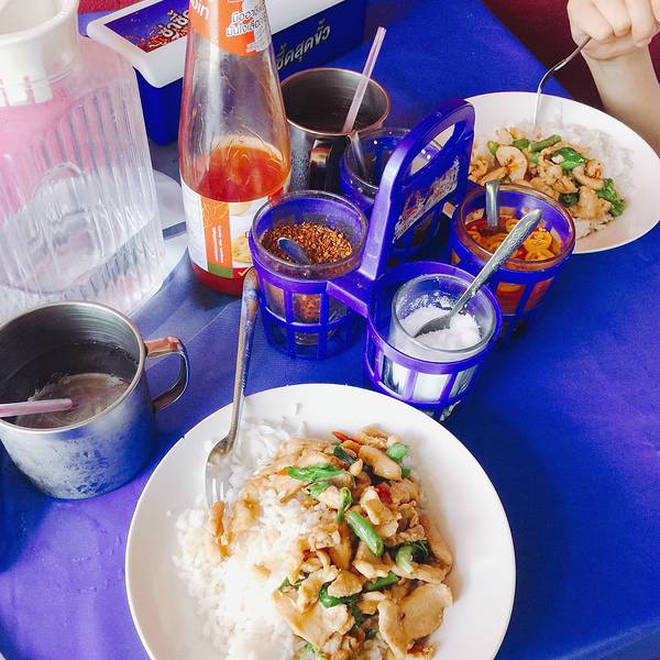 - 回到老城区找到民宿美美推荐的专为本地人服务的这家老店,再一次享用了地道的泰味:泰式炒猪肝,清炒...