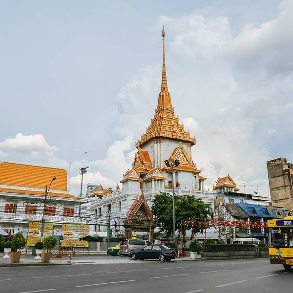 其实从考山路直接打车或者步行去唐人街是更近更方便的,打表的话也就60B左右。但是我的船票和BTS票都是一日通票,也不赶时间,所以宁肯绕远消磨时间。从华南蓬步行去唐人街适合途径的一个寺庙,正值夕阳西下,配...其实从考山路直接打车或者步行去唐人街是更近更方便的,打表的话也就60B左右。但是我的船票和BTS票都是一日通票,也不赶时间,所以宁肯绕远消磨时间。从华南蓬步行去唐人街适合途径的一个寺庙,正值夕阳西下,配合着寺庙的尖顶非常的美。两年了,故地重游。