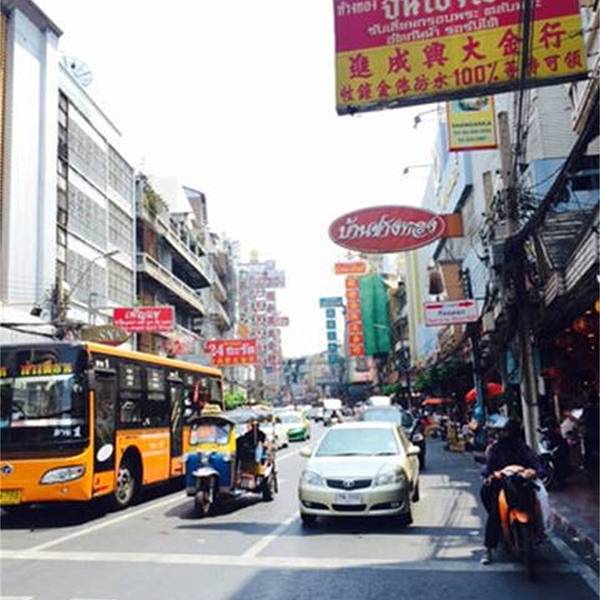 到达china town的一个牌坊以后,背面其实是写着圣寿无疆。唐人街除了华人和华商产品多外,其它与曼谷的繁华商业街区已没有太大区别,在这里,没有过多的感触,有的也可能只是一点点的印象罢。曼谷的“唐人街”,...到达china town的一个牌坊以后,背面其实是写着圣寿无疆。唐人街除了华人和华商产品多外,其它与曼谷的繁华商业街区已没有太大区别,在这里,没有过多的感触,有的也可能只是一点点的印象罢。曼谷的“唐人街”,车水马龙。这个闻名遐迩的“中国城”,现已不仅仅是传统的华人居住和商业区,也成为了这个“天使之城”的一张城市名片,吸引四面八方的游人前往观光、购物。嘿嘿先拍个照,今天天气好得不得了。唐人街最大特点是店铺招牌林立,其中最显眼的是金店。全长不到两公里的耀华力路上,有上百家大大小小的金店,门口竖着巨大的招牌,柜台里陈列着金光闪闪的首饰和黄金制品。曼谷70%的金店都在唐人街。与北京不同的是,这里的金饰是一堆一堆摆在那儿,透出一股豪气,仿佛在卖白菜,让顾客不自觉地也跟着大方起来。唐人街鱼翅,比较多的是大量的金铺,里面有很多金链首饰等等,至于真假,有兴趣的朋友可以进去多了解一下。在着充满中国气息的街道里,却感受不了亲切,可能因为商业文化太浓,我们11点到达这里,大多数都是金铺和商业的餐厅,地道的还真的挺少,有很多杂货店卖着小商品,因为有点累,所以去了附近的星巴克坐了小息了一会儿,这里的星巴克基本和国内持平,个人感觉也没国内的好喝哈哈,所以唐人街是一个行程不紧凑的游人的不二之选,因为这里的街道包括每人每物都有着泰本土和华人的气息,只是少了点新鲜感。休息站,旁边是超市。唐人街的大华大酒店这里的街道还挺繁华的,多得是泰国人,没有太大的旅游意义,不整洁的街道和交通造就了唐人街还是平常人的印象里的唐人街,独特的地方唯独是金铺,其他想说的还真的没有。唐人街一个佛像的建筑在小息了一会知道,本想着继续赶路,去KAOSAN Rd的,但是考虑到已经是中午12点多,中午的太阳是最猛烈的,决定还是直接步行回酒店算了,因为下午也很热,考虑到体力和中暑还是去吃个地道的午餐吧。大家去旅游的时候如果是天气好,万里无云,建议早上早点出门,中午回酒店休息,下午和晚上再出门,这样也不会给晒黑,也能感受当地的景观。鸡肉豆角饭 饮品免费加冰在回程的路上已经是1点多,我们去了一个很有特色的地道小吃坐了下来,发现老板是不会英语的,这就尴尬了,不过发现了一个问题,世界普遍的男人都懂得一个词 chicken 哈哈哈哈,为什么呢,我就跟他说我要一句 chicken , 然后他就好像听懂了一些甲骨文后热烈兴奋的说 woooh chicken OOOK,然后味道真的很好吃哈哈哈哈,不咸不腻的哈哈。翻译上的泰文是直译的没有作用,出门在外英语手语很重要,看一人怎么表达他内心的语言。唐人街入口的路牌那时候走过的小巷这个有点像我们家的CD街,Foshan的朋友感觉像吗这些建筑很普遍We will keep walk ,Style of mine.