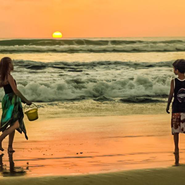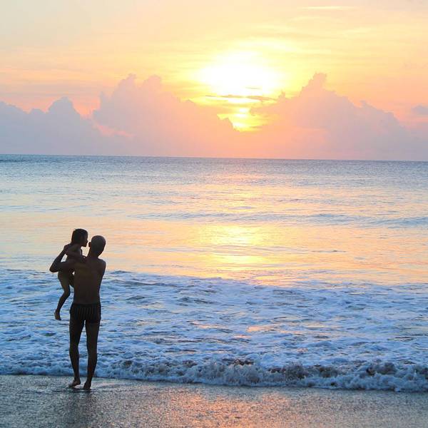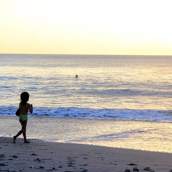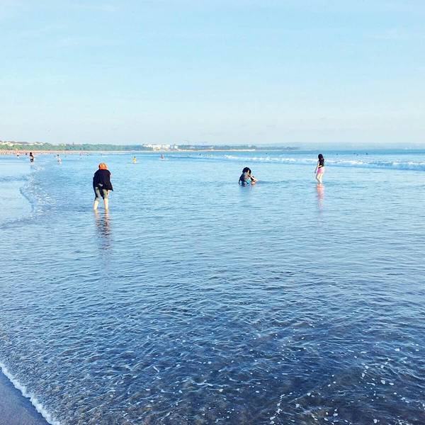 这是库塔当地一家人的生活:海滩边,夕阳西下,爸爸抱起大女儿,陪她在水中嬉戏了片刻,给大女儿洗好澡,而后抱着女儿转身回到沙滩上交给妈妈,再抱起一旁的小女儿,同样的戏水、洗澡,然后一家人牵着手回家。关于大海,我见到最好的画面便是这样。