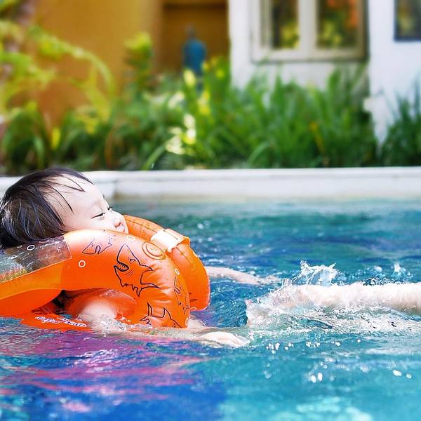 中午阳光温度正好,回去游泳咯。丫头进步巨大,已经不用扶,自己套个游泳圈玩得欢了。 展开