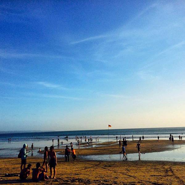 库塔海滩离叶子也就10分钟,海滩上到处都是晒日光浴的人,这也是闻名的冲浪胜地,浪很大,不适合游泳,如果想学习冲浪,2 小时就行,我们随便逛了逛,路上吃了点东西,嗯,地产啤酒是必须的。