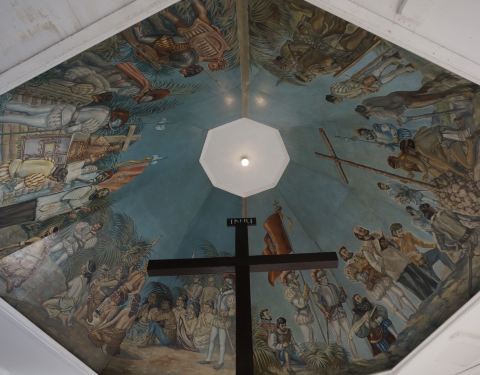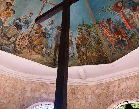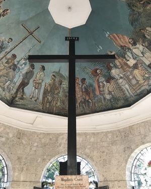 麦哲伦为传播宗而建,当地人认为通过食用这个十字架上的木屑可以治疗疾病,因此原有的十字架被破坏。现在的十字架是后来做了一个木框,将原有的十字架包裹在里面。整个景点就是这么大的一个小亭子,里面也仅有这个十字架以及壁画。和欧洲华丽复杂的壁画不同,这里的壁画看起来更为简陋,这和文化积淀应该有很大的关系。普通游客在这里停留10分钟就够了,最大的看点是其历史意义。