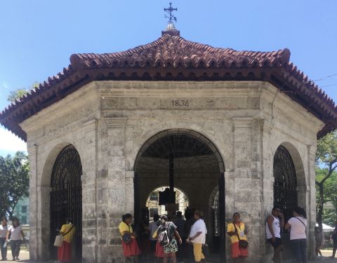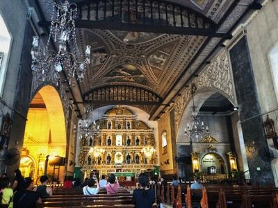 麦哲伦十字架就在宿务市中心,旁边100米就是圣婴大教堂。 由航海家麦哲伦建立。后又变成了当地人的信仰。有不知道是小贩还是工作人员的菲律宾阿姨在这里兜售蜡烛,叫卖的声音特别响亮,有点煞风景。 这是一个只要10分钟就能逛好的景点。