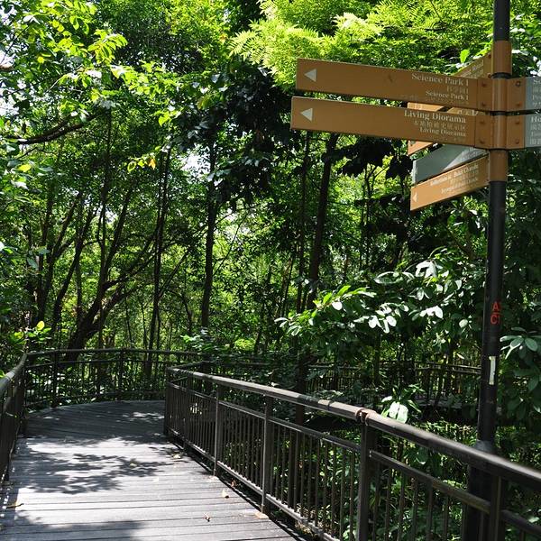 我们选择经拱桥东侧步入直落布兰雅山高架走道(Elevated Walkway)和丛林小径(Forest Walk)。