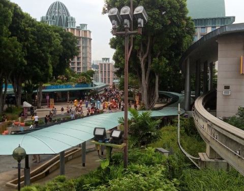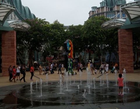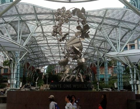 圣淘沙名胜世界节庆大道,在圣淘沙玩的时候,可以顺便过去逛逛。商店和吃饭的地方都很多,地上一层地下一层,不过人也很多,餐馆都要等位。几个著名的酒店就在这周围,环球影视城的入口也在这里。