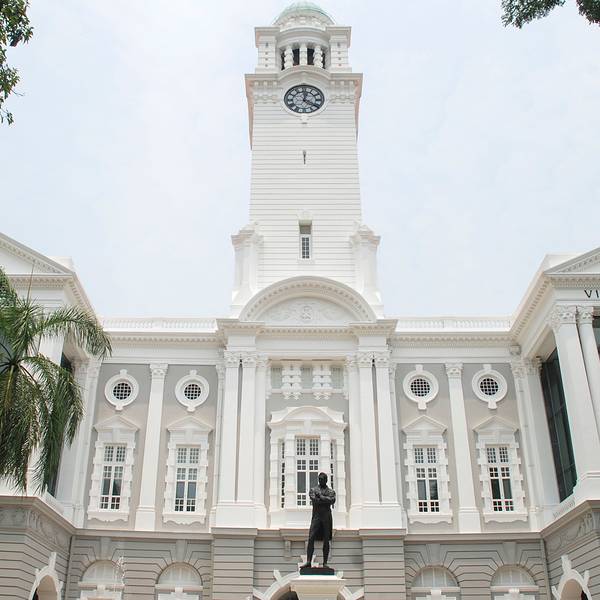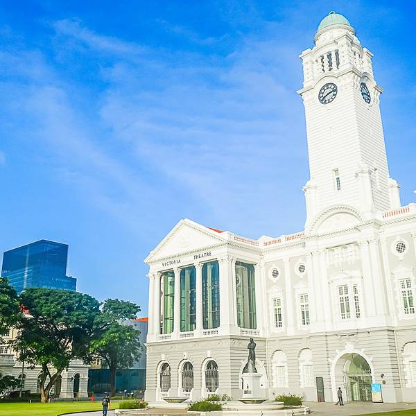 维多利亚剧院位于鱼尾狮公园附近,是一座两层的白色建筑,外观宏伟大方,细节精致,艺术气息浓厚。一旁紧挨着的就是音乐厅,门口是莱佛士爵士的雕像,来参观的游客都喜欢着这里合影留念,新加坡一些高规格的艺术展都会在这里举办。