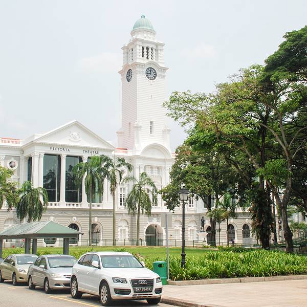 维多利亚剧院位于鱼尾狮公园附近,是一座两层的白色建筑,外观宏伟大方,细节精致,艺术气息浓厚。