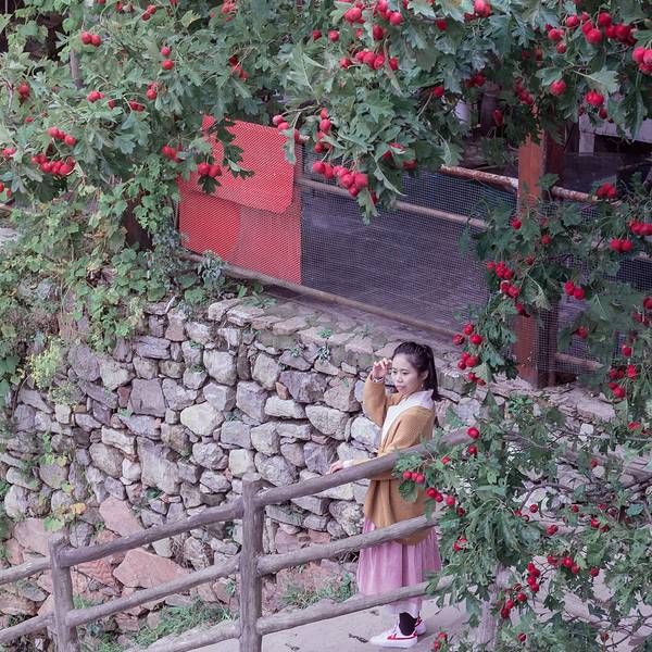 万仙山的门票78元,同样有摆渡车费用45元。万仙山的摆渡车要做30分钟左右,盘山蜿蜒而上。最窄的路只够单车道,而另一侧就是悬崖,这里的司机大概开车技术都极好吧。在挂壁公路的起点就会停车,建议下车步行体验一下挂壁公路。因为郭亮村里头真的没什么好看的,挂壁公路还有意思些。路上遇见90岁的老爷爷拄着拐一步步往山上走,子女在一旁加油打气。正是山楂丰收的季节,上演一下山楂树之恋,嘻嘻~找面墙凹造型。郭亮村地处山西和河南两省交界处的密林山中,我们走着走着就到了山西境内。海拔1700米,被称为“太行明珠”。郭亮村名气很大,但实在没什么看头,几个破旧村长房子可以参观,在观景台上看到的就是烟雾缭绕。我们走了一圈就去乘坐摆渡车去了下一个景点南坪村。南坪村的步道走到尽头是个瀑布,我们没走到头,发现小舞发烧了,就匆匆忙忙离开了。 展开