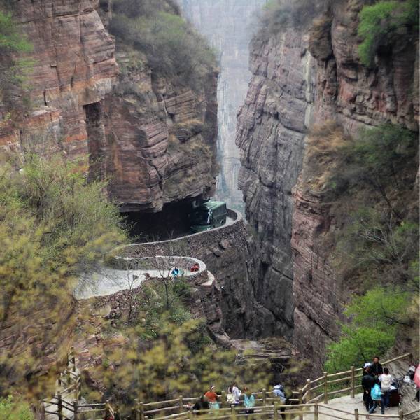 1、世界第九大奇迹—人工开拓的挂壁公路。