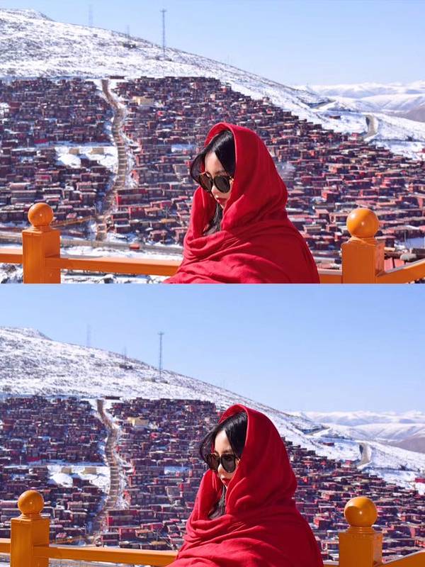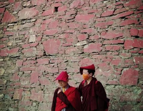 纯净的白雪就像前世未解的缘,一片一片悄然而落,盖再山间、屋舍、路道和经幡上红色的佛国,蒙上洁白的雪花,绛红与纯白交相辉映,一片宁静祥和。纯净的白雪就像前世未解的缘,一片一片悄然而落,盖再山间、屋舍、路道和经幡上。