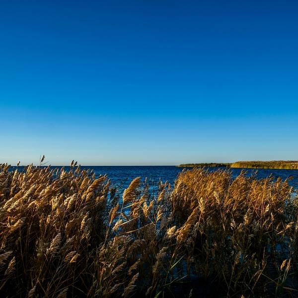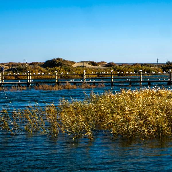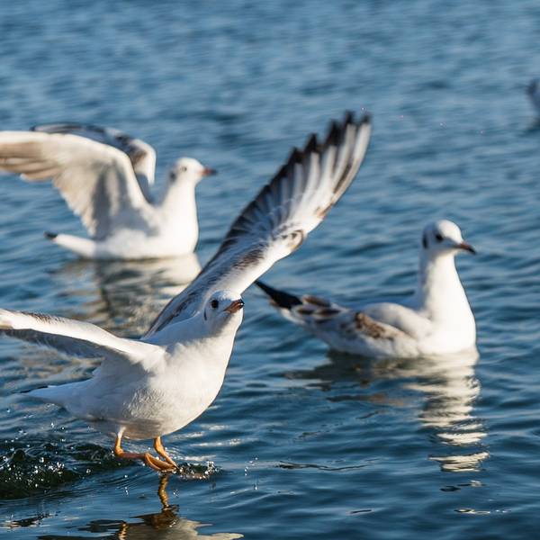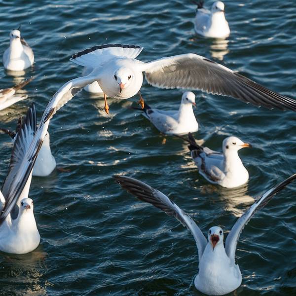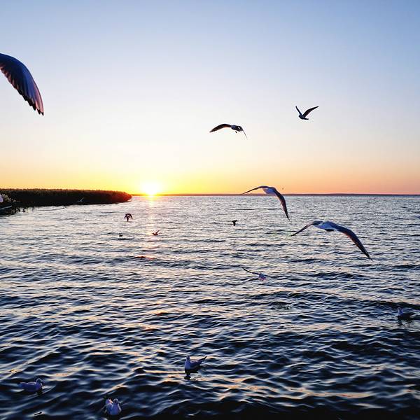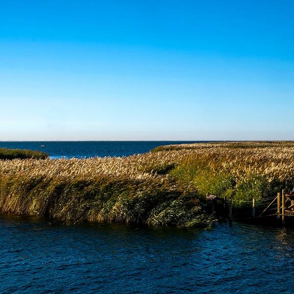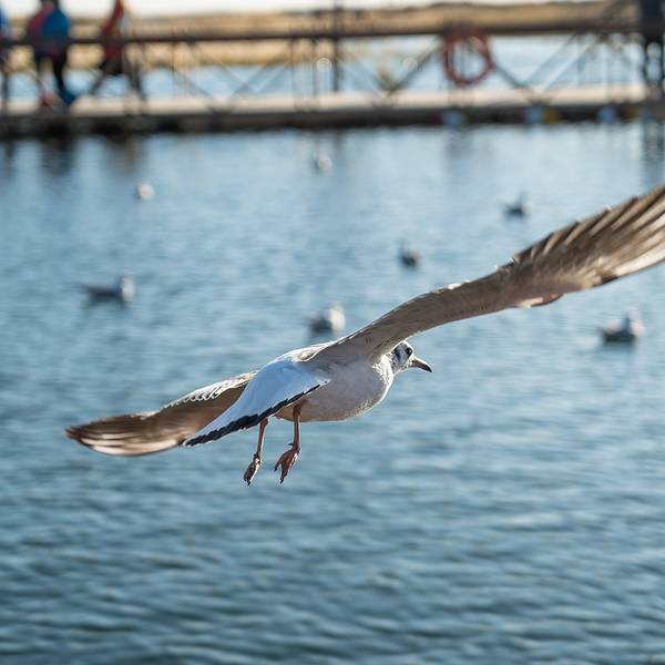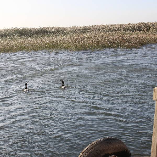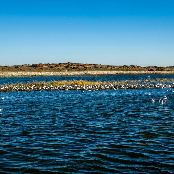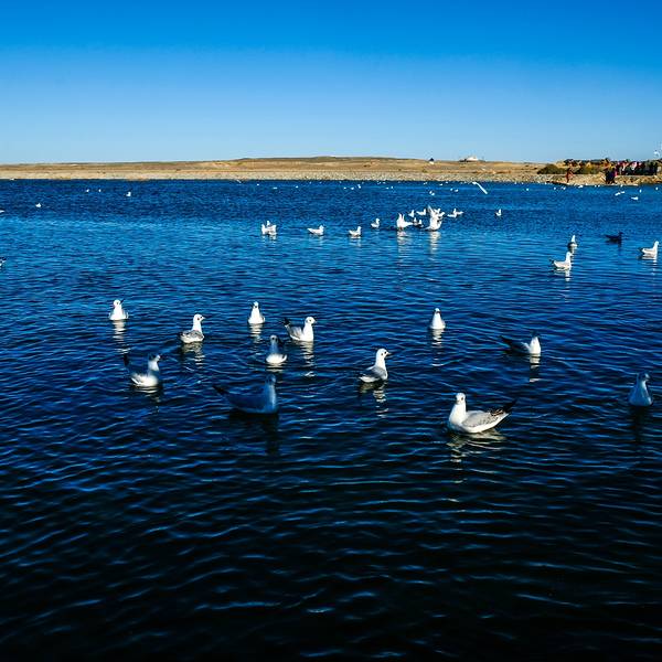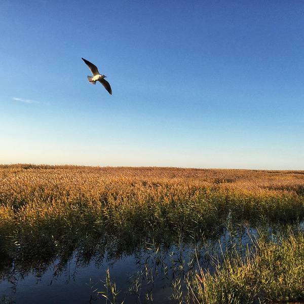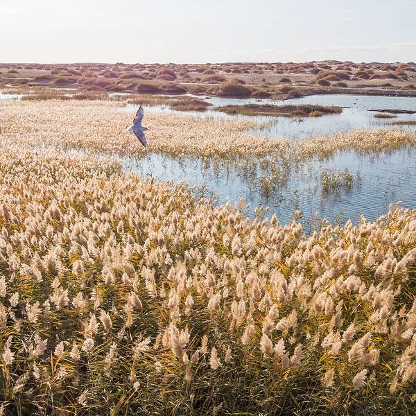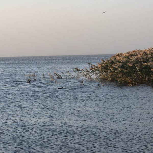 人们拿着食物引诱着海鸥在水面上忽起忽落争相拍照。湖边的芦苇很是茂盛,