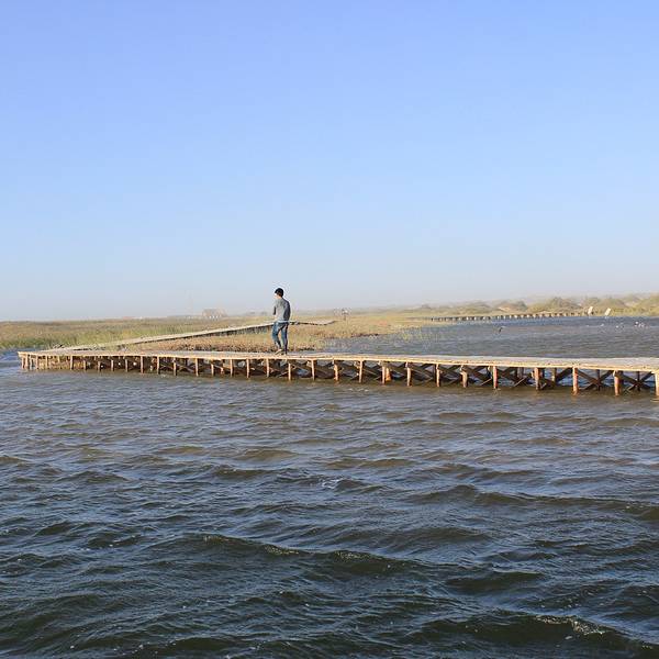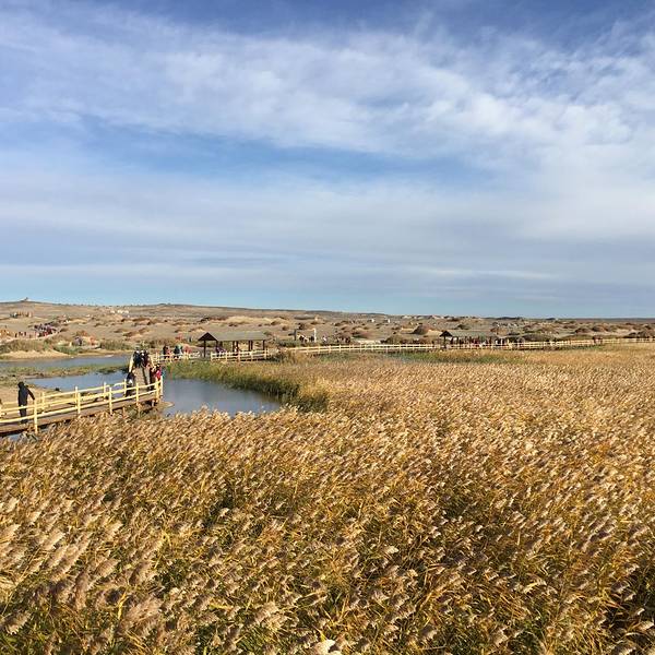 想不到沙漠里还有这么一大片绿洲。这是居延海的景点之一,仙踪栈道。