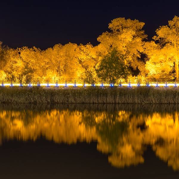 而且我发现,如果自动对焦不好使,就不如用手动跟的更准!最打动人的是湖水,水鸟,芦苇与岸边荒漠的和谐相处,近处是婉转的水,旁边及远处是望不到边的荒漠。整个天的色彩映在湖边,芦苇和海鸥的影子,很美。夜色降临,一路开车回到额济纳旗(相当于县城),因为景区就坐落在这座县城的东方,整个景区被护城河围起来,晚上的夜景非常漂亮,在外面望过去,金灿灿的一片,壮观而诱人,期待明天有个好天气,可以收获满意的作品。有人说,额济纳是一首诗,每年只有一次旅行,因为那里仅仅存在数十日的绝美绚丽......