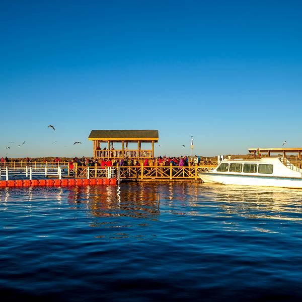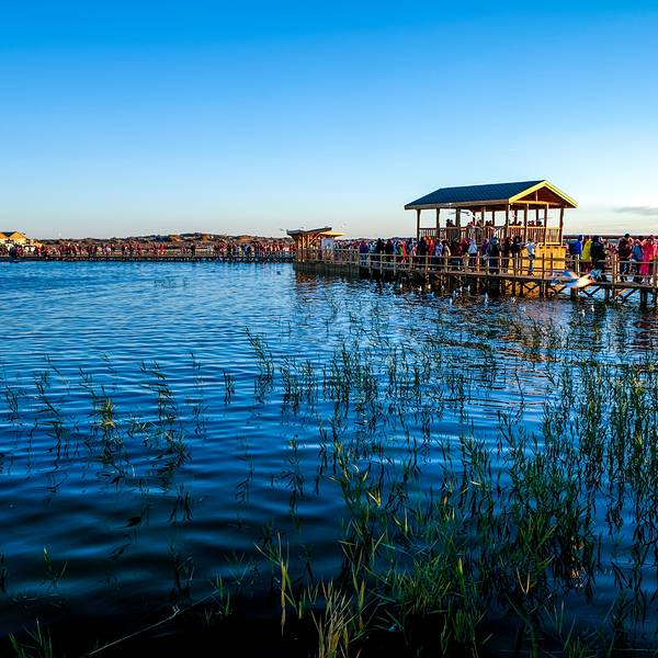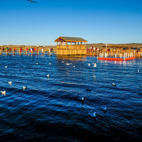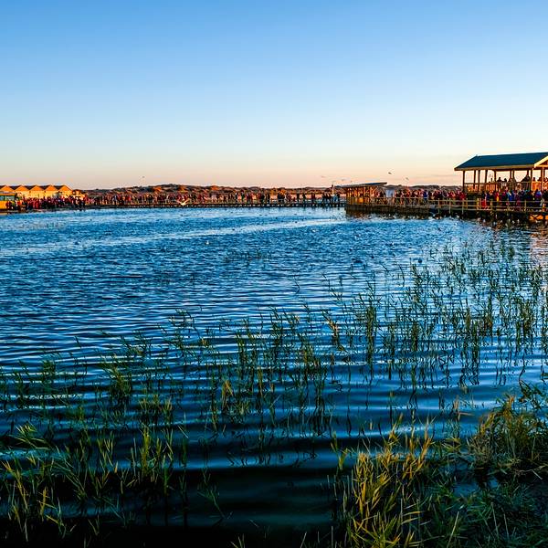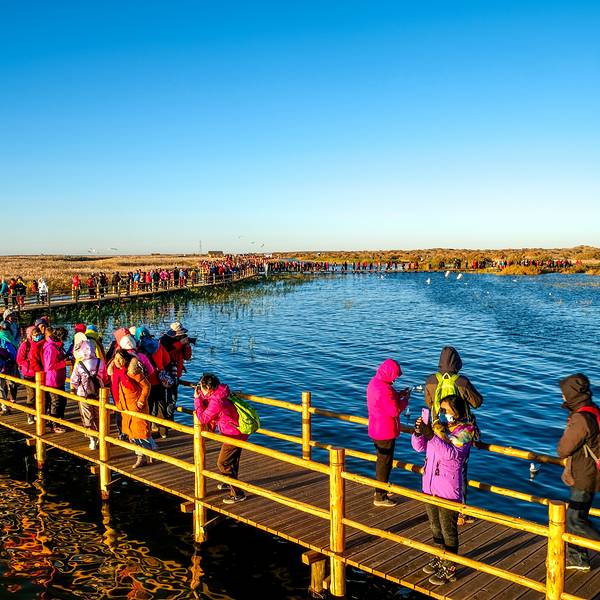 金骆驼 但是气温也非常低,10月份的时候清晨的气温已经降到零度,所以必须准备厚冬装御寒,而到了中午气温...居延海现在正式的名字是叫苏泊卓尔,是位于内蒙古额济纳旗北部靠近外蒙古的一个湖泊,景色非常不错。居延海景区的门票是80元,包含门票和观光车,景区内主要有3个观景台。1号观景台的位置略高,可以远眺整个居延...居延海现在正式的名字是叫苏泊卓尔,是位于内蒙古额济纳旗北部靠近外蒙古的一个湖泊,景色非常不错。居延海景区的门票是80元,包含门票和观光车,景区内主要有3个观景台。1号观景台的位置略高,可以远眺整个居延海的全景。2号观景台可以看到芦苇和很多水鸟,这里也有快艇码头,也已坐船游览湖泊。3号观景台是欣赏日出的最佳位置,从2号观景台可以沿着栈道一直走到3号观景台。通常来说,前往居延海都是自驾或者跟团,因为这个景区离额济纳旗的城区比较远,清早也没有什么公共交通工具。早上居延海主要是为了看日出的景色,所以最好是自驾或跟团比较方便,额济纳的很多酒店也提供居延海以及周边的胡杨林、怪树林、黑水城两日游、一日游的服务,一般来说10月份左右是这里的旅游旺季。值得注意的是,虽然居延海的日出景色很美,但是气温也非常低,10月份的时候清晨的气温已经降到零度,所以必须准备厚冬装御寒,而到了中午气温又回升至20度左右,沙漠地区的昼夜温差是非常大的。游玩居延海,大多数游客还是冲着摄影来的,这里可以拍到漂亮的日出,湖面的倒影,展翅翱翔的水鸟,以及摇曳的芦苇荡。不过在沙漠地区拍摄要注意防尘,很多人在这里相机出故障,镜头近沙子,所以尽可能避免在沙漠地区换镜头或让相机长时间暴露在外。 展开