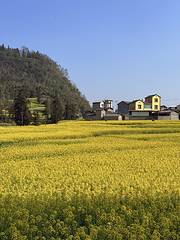 罗平观菜花,几个点必去;一是县城东北方向的金鸡峰。登上金鸡峰,是一望无际的金色海洋,稍远处有孤峰拔起,很壮阔。花海中停泊着一叶叶“小舟”,原来这是蜂箱,于是,蜜蜂飞舞,穿梭于花浪之间。二是金鸡峰下的牛街乡,全是梯田,梯田上有的种油菜,有的种小麦、蔬菜等,各种色块交织,如油画般斑斓。三是由县城往东南,沿大水井去多依河途中,这里地形起伏大,花田随地形种植,富于变化,相当好看。多依河全长12公里,河水清澈碧绿,时有竹筏出没其中;河道上分布着大小50余个钙化瀑布浅滩、十弯九跌,两岸均有油菜花。 展开