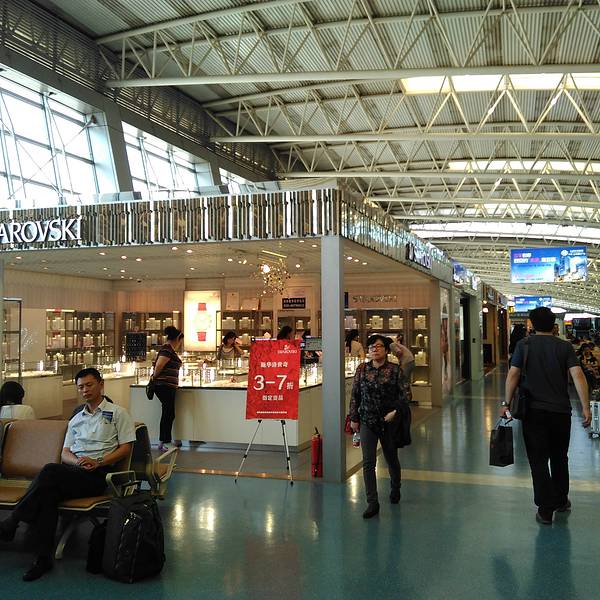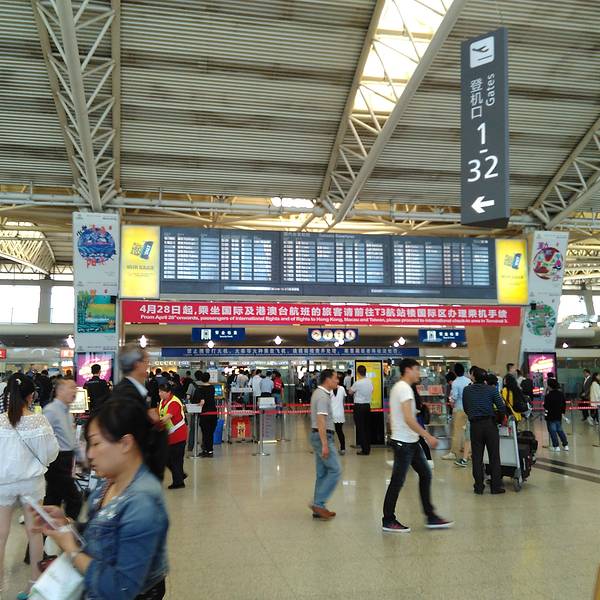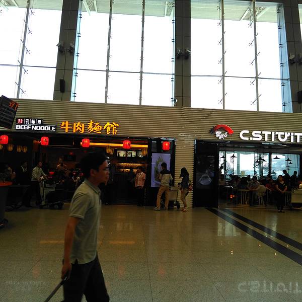 机场服务:T2航站楼有分2个大区 (右边是给国航, 深航使用, 左边是给厦航, 山航等航空使用),每个区域都有VIP柜台来加快常旅客的值机速度,当然还有许多的自助值机柜台可以加速你的值机手续, 安检通道在中间。机场李有很多高端品牌的商店, 比如Samsonite, Disney, Swaroski等。 还有许多的餐厅跟咖啡厅(2岸咖啡), 但是在这里吃个饭有点小贵, 比如: 一份牛肉面要价48, 一份牛肉饭套餐要68。机场有免费WIFI,但是基本上连不上去,要不然就是速度很慢。