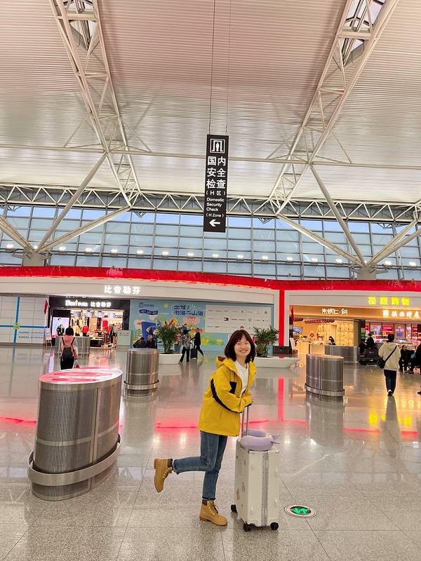 托运行李后轮到我们过安检了,也是太没有经验,我给忘记随身带的化妆包里有剪双眼皮贴的剪刀,师兄包里有全身防晒的喷雾,这两样东西就留在咸阳机场了,要是给他俩打包托运,得加300块,太不值得了。。。血的教训。。。