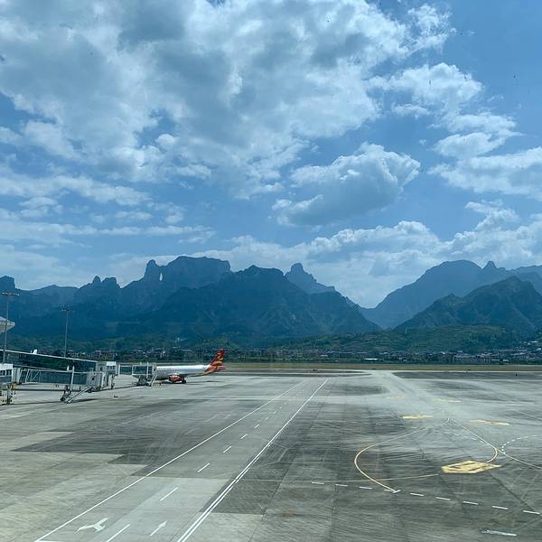 - 张家界荷花机场,好听的名字好看的风景,在天门山脚下,站在停机坪,天门洞尽在眼前,在机场便领略了...