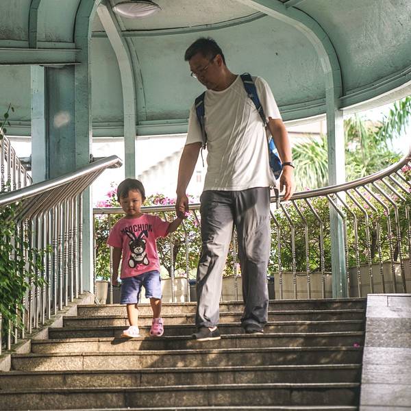 趁着爸爸妈妈还在办手续,上上下下地爬来爬去。