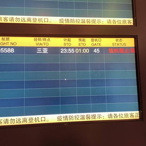 由于行李不多,我们没有办理托运,直接过安检等待登机。但是由于流量管制原因,飞机晚点至凌晨1点才起飞,抵达三亚已经是两点了。