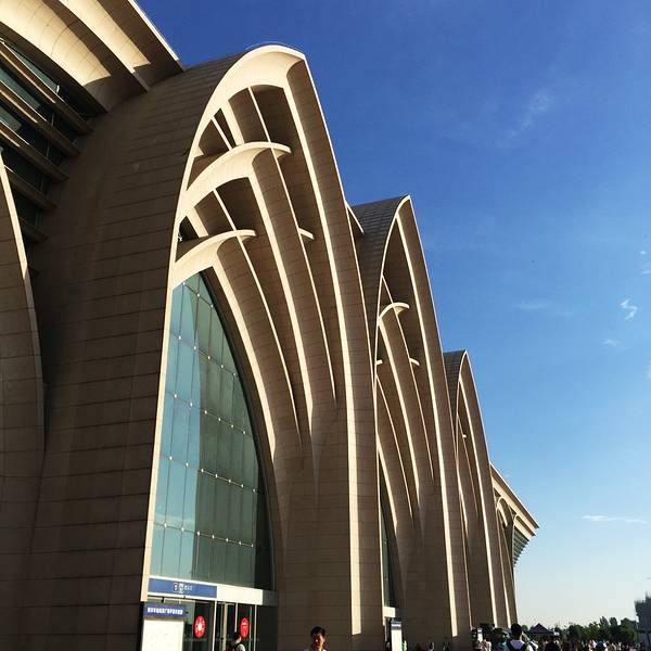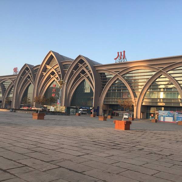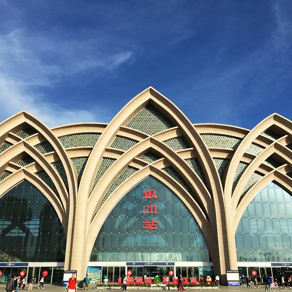 一早到了银川火车站,建筑蛮有伊斯兰特色,蓝天白云的。