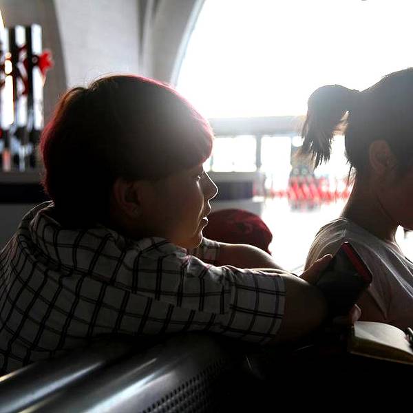 由于到站太早要等存包还得等一个小时 等的时候我拍的一张照片 也是我较为满意的照片之一 有没有那些年上学前后桌的感觉