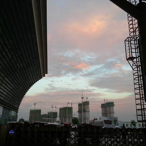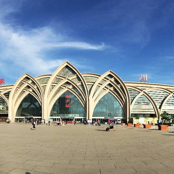 - 一早到了银川火车站,建筑蛮有伊斯兰特色,蓝天白云的。超级棒的全景美图 蓝天棒棒的