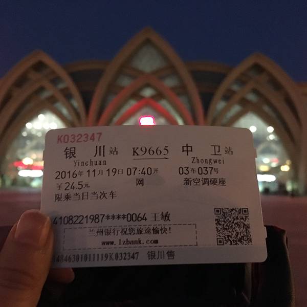 怀着没有吃到牛肉小饭的心塞赴银川。九个小时的硬卧真是有点难熬,一路都是荒漠荒漠荒漠,西北之大。换票挺有意思。在我斜上方铺位穿着牛仔外套的妹子不知道还好吗。