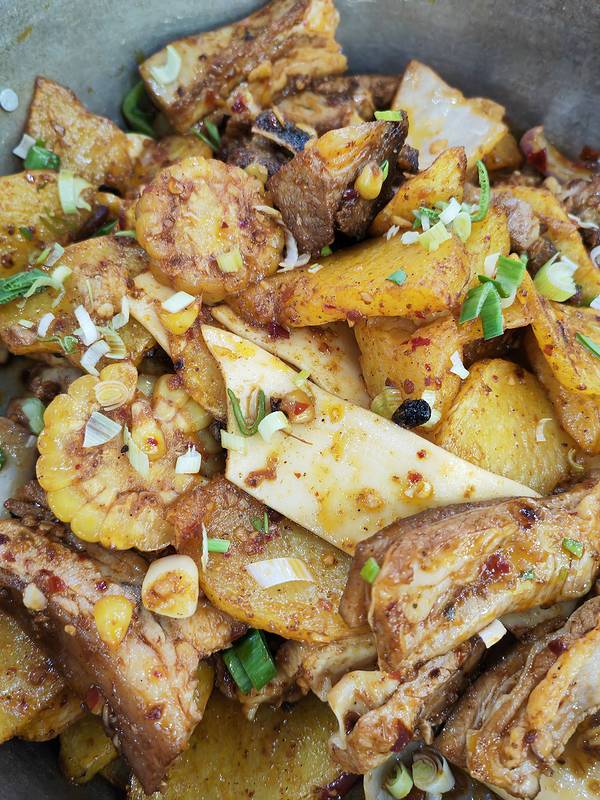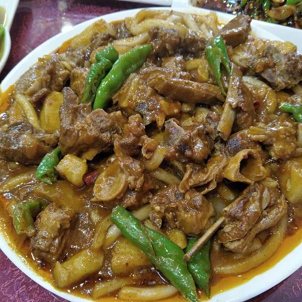 - 羊肉块,真的超级大盘。羊蹄,超级入味。烤土豆片,西北的土豆特别好吃。点了1斤的量总感觉是1公斤