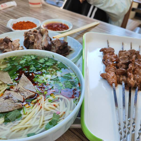 别了,西宁的羊肉。手抓,烤羊肉串,烤羊肠,羊排炕锅,羊肉拉面,西宁最后一餐还是羊肉,嫩而香,一定要把好吃的那个味带回家!到西安啦~