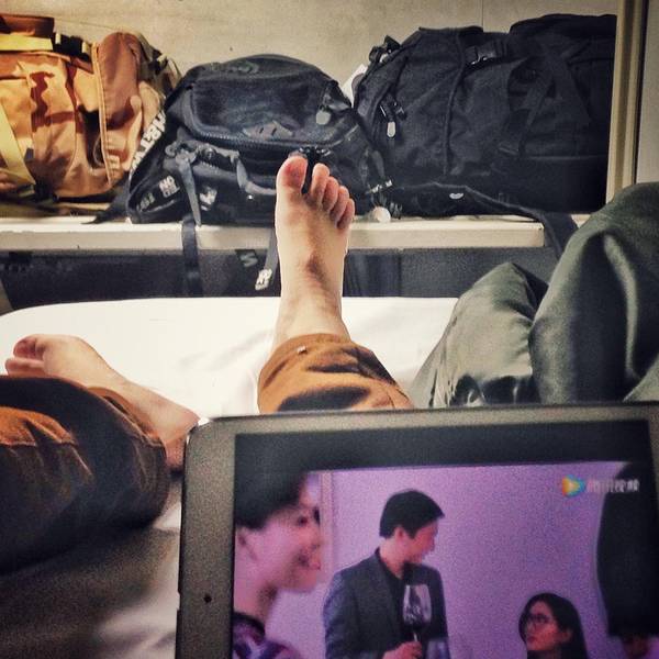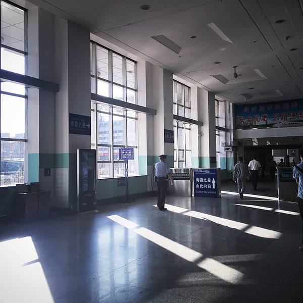 拍摄这张照片的时候已经晚上将近十点了 外面阳光依然耀眼 厅里人声依然沸腾 九点的火车依然没来~ 之前认识的造铁路的大叔告诉我 火车的准则是 慢车让快车 误点的让准点的~ 所以如果你坐的是慢车 而他又误点了 那就只有呵呵哒了~