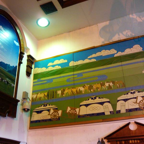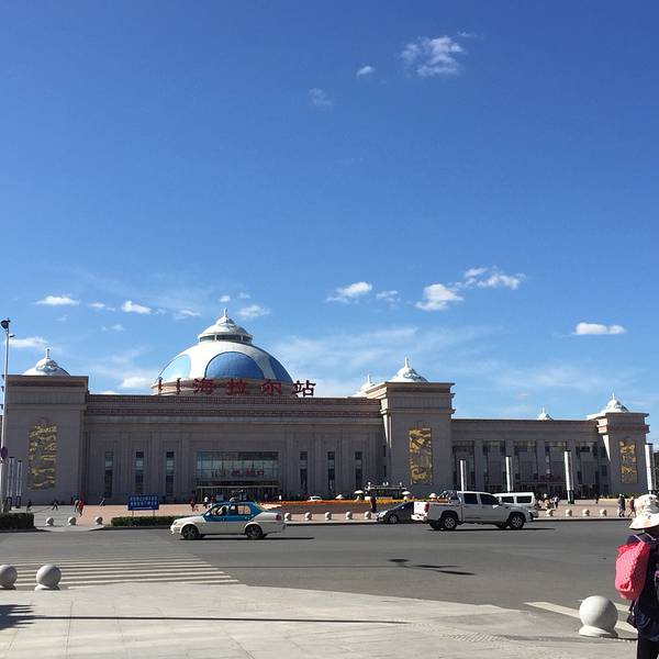 - 海拉尔车站也非常具有蒙古特色,在蓝天白云的衬托下更显雄伟。海拉尔车站。软卧车厢有专门的休息室